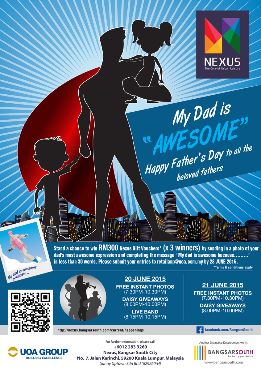 Happy Father’s Day to all the beloved fathers! Express your love and gratitude to your Dad this Father’s Day by sending in a photo of your Dad’s most awesome expression and complete this sentence in less than 30 words, ‘My Dad is awesome because…’ You’ll stand a chance of winning RM300 Nexus Gift Vouchers!