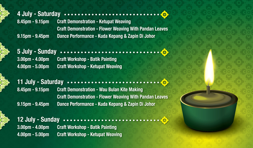 We've prepared some activities to get you into the Raya mood! Bring along your friends and family to catch the Dance Performance, Craft Workshop and Demonstration at Nexus Bangsar South!