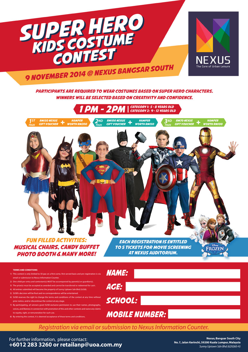 Kids Costume Contest will be held on Saturday, 9 November at Nexus, Bangsar South. Enter our costume contest for a chance to win a fabulous prizes.