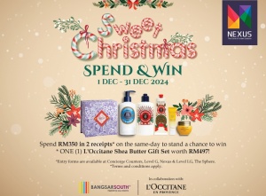 In the spirit of a giving season, stand a chance to win ONE (1) L’Occitane Shea Butter Gift Set worth RM 497* when you spend a minimum of RM350* in a maximum of TWO (2) receipts on the same day.